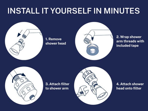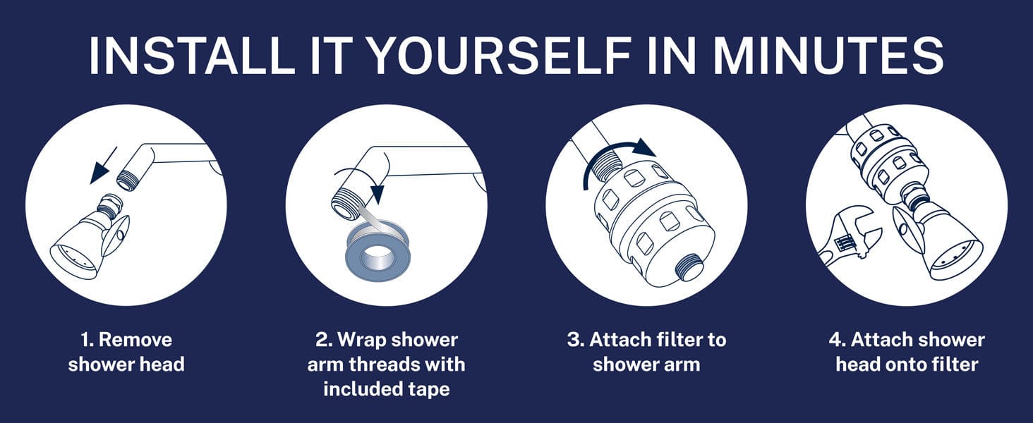- Universal inline design connects to any standard shower head in minutes.