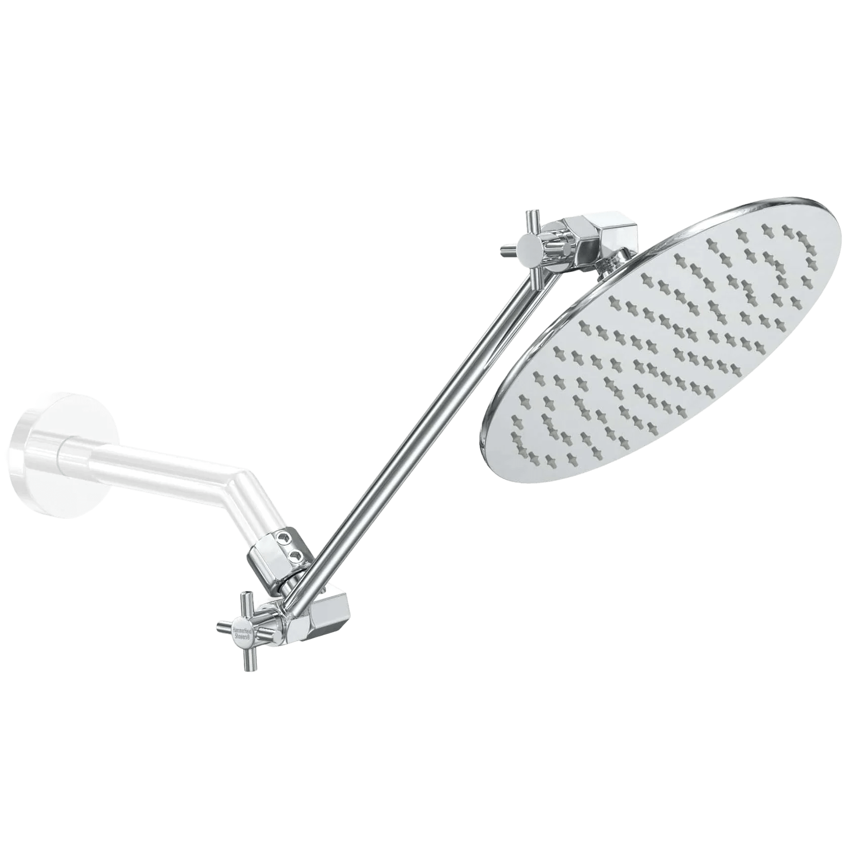 Adjustable Shower Arm Extension All Metal Dual Shower Head with Adjustable Arm - Complete Shower System with Valve and Trim Chrome / 2.5 GPM - The Shower Head Store