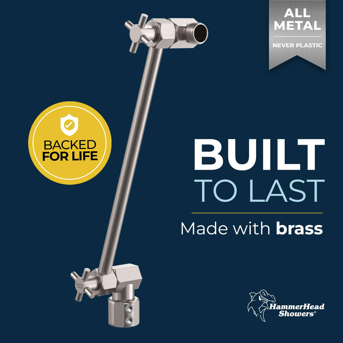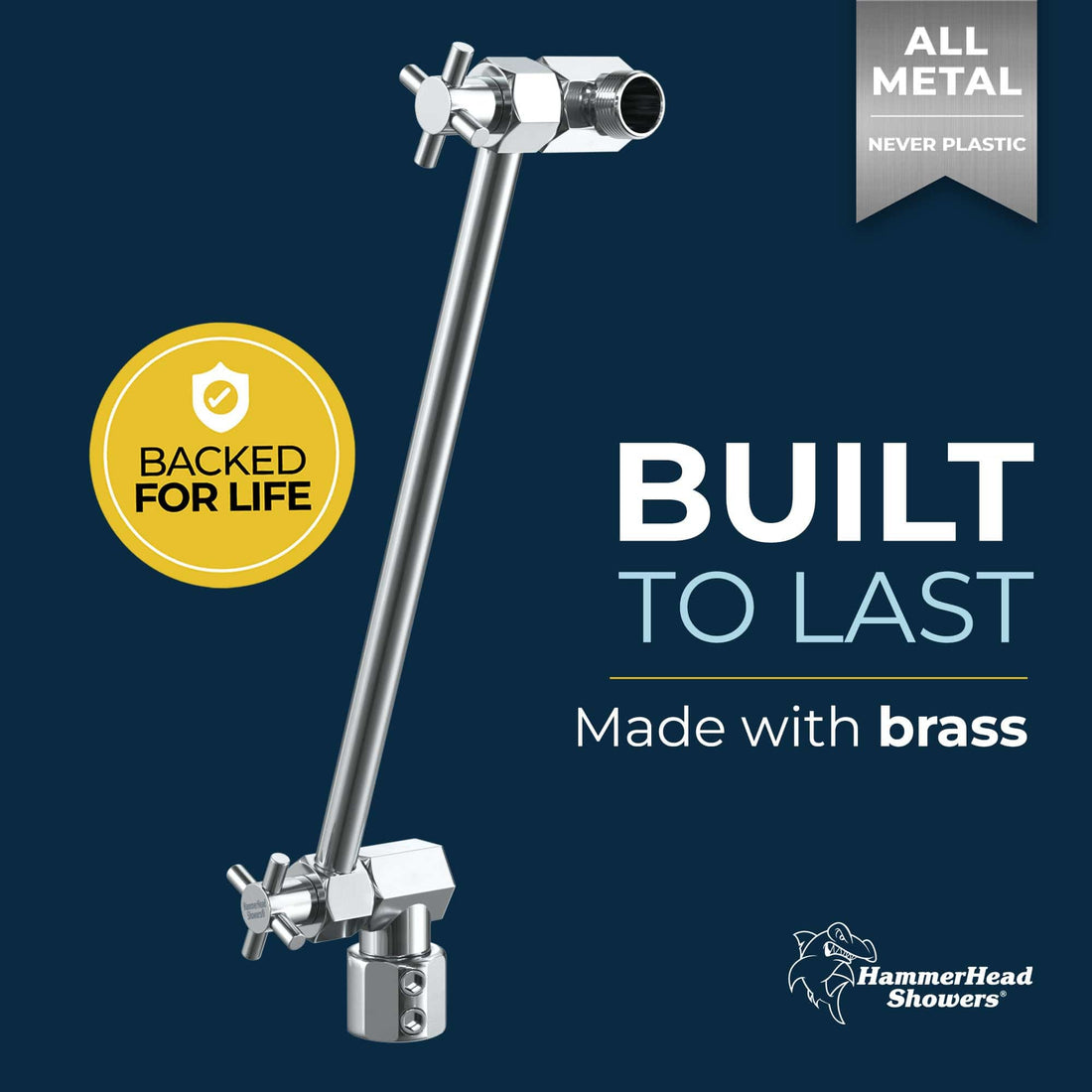 This HammerHead Showers extension arm is equipped with the DEEPEST GEARS on the MARKET so you can shower with the confidence that the shower arm won't sag or droop. We call them Shark Teeth — they are that strong!