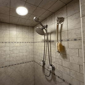 Dual shower heads are fantastic for people who like options, whether you have a household with different needs or you just like to switch things up. With 2 sprays to choose from, you can keep it simple but creative — going from the high pressure handheld to the immersive rain shower head with a flip of the diverter switch. You can even run both at the same time if you want to really turn it up a notch.